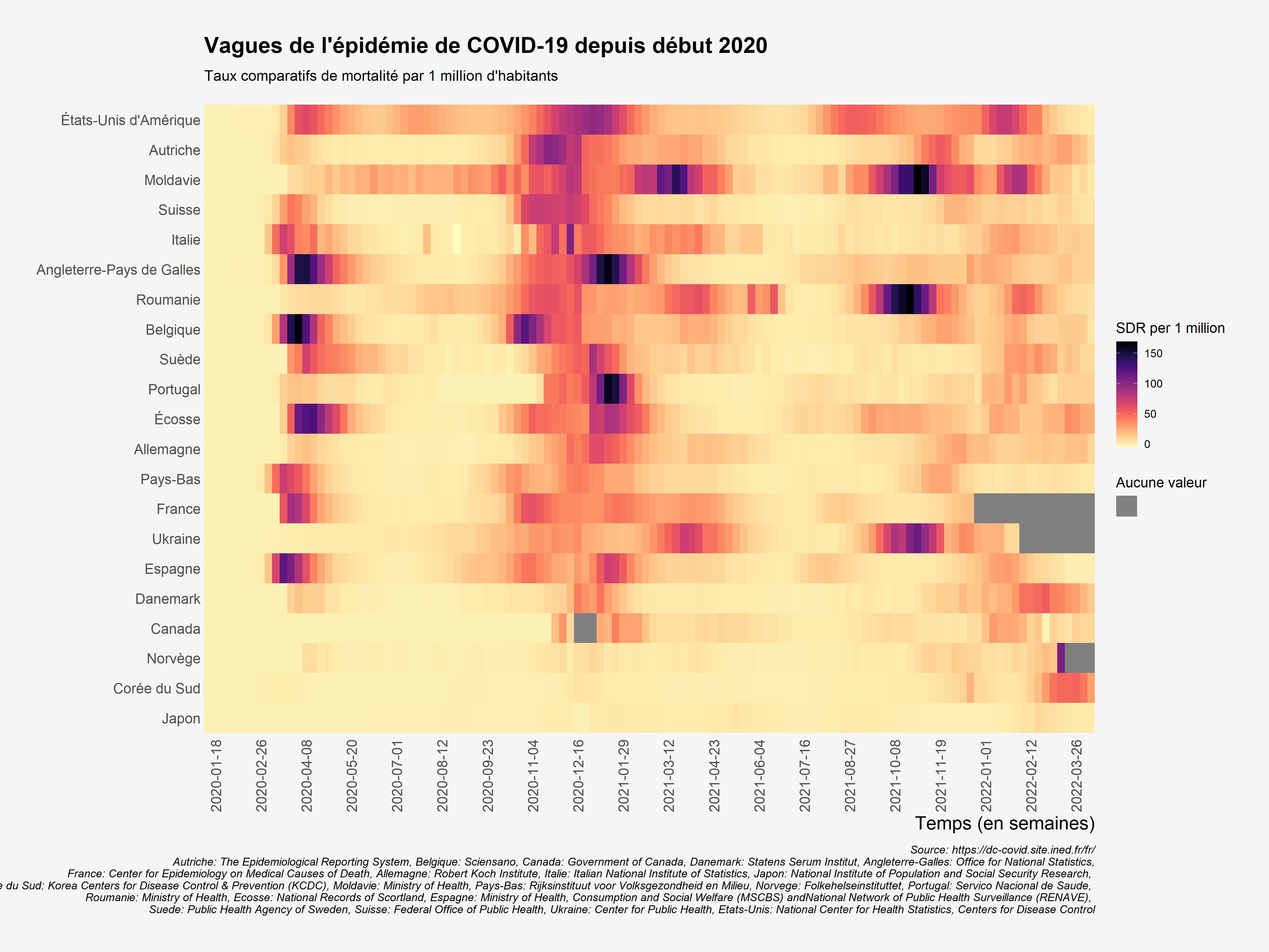 Dans ce contexte de crise sanitaire inédit, un des objectifs importants est de pouvoir surveiller le développement de la pandémie. De nombreux pays mettent à disposition le décompte journalier des décès par COVID-19. Pour aller plus loin, la démographie dispose des outils d’évaluation de la couverture et de la comparabilité des données entre les pays, pour une analyse précise des tendances.